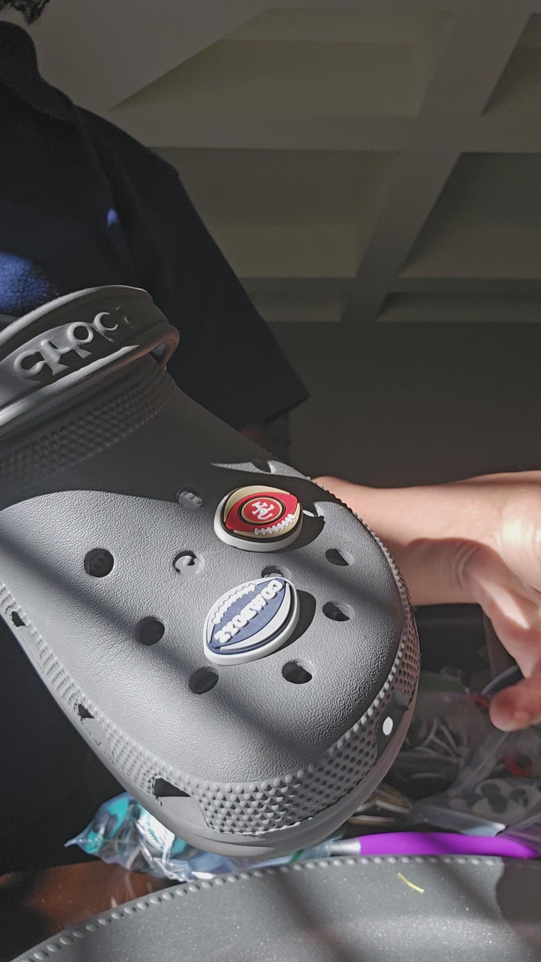 Show your team loyalty right down to your shoes. These luxe, high-quality fancy charms instantly elevate your Croc-style clogs from basic… to full-on game day energy.