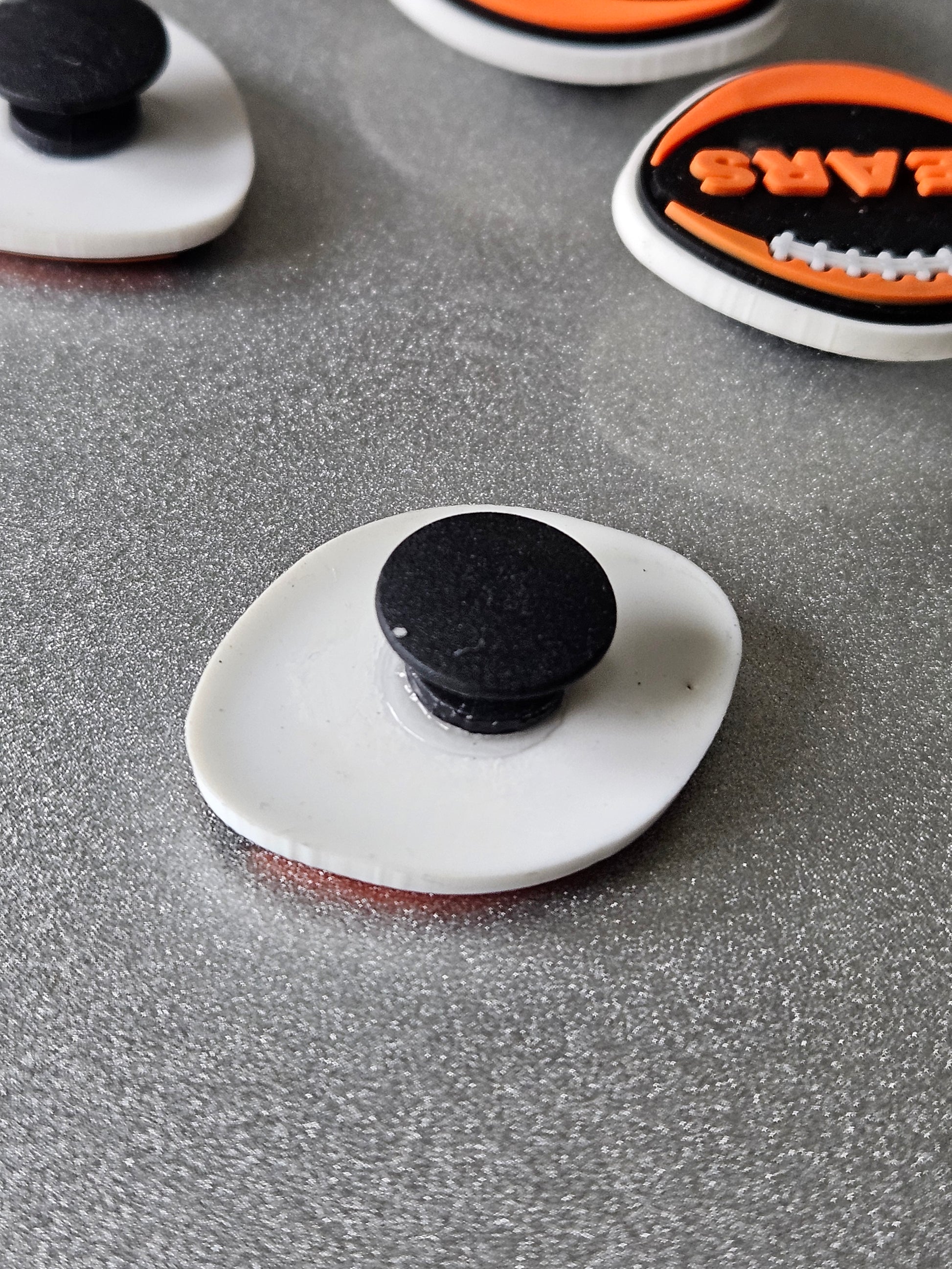 Easy to pop in + secure once installed, these shoe charm buttons stay put thanks to sturdy rubber backing — no slipping, no worry. Mix and match your favorite players, team colors, mascots, or football icons to create a custom look that shows off who you root for.